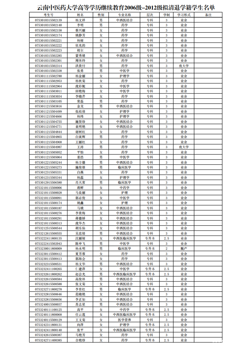 世界杯现场直播平台药大学继续教育学院关于清退超过最长学习年限学生学籍公示